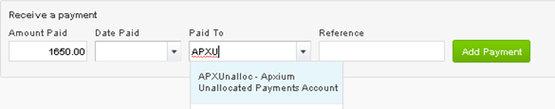 Or, if you mistakenly double-keyed in a payment taken by Apxium, you can remove the manual payment added to the invoice and then pay the invoice from the unallocated account. To do so, please follow the instructions set out below.